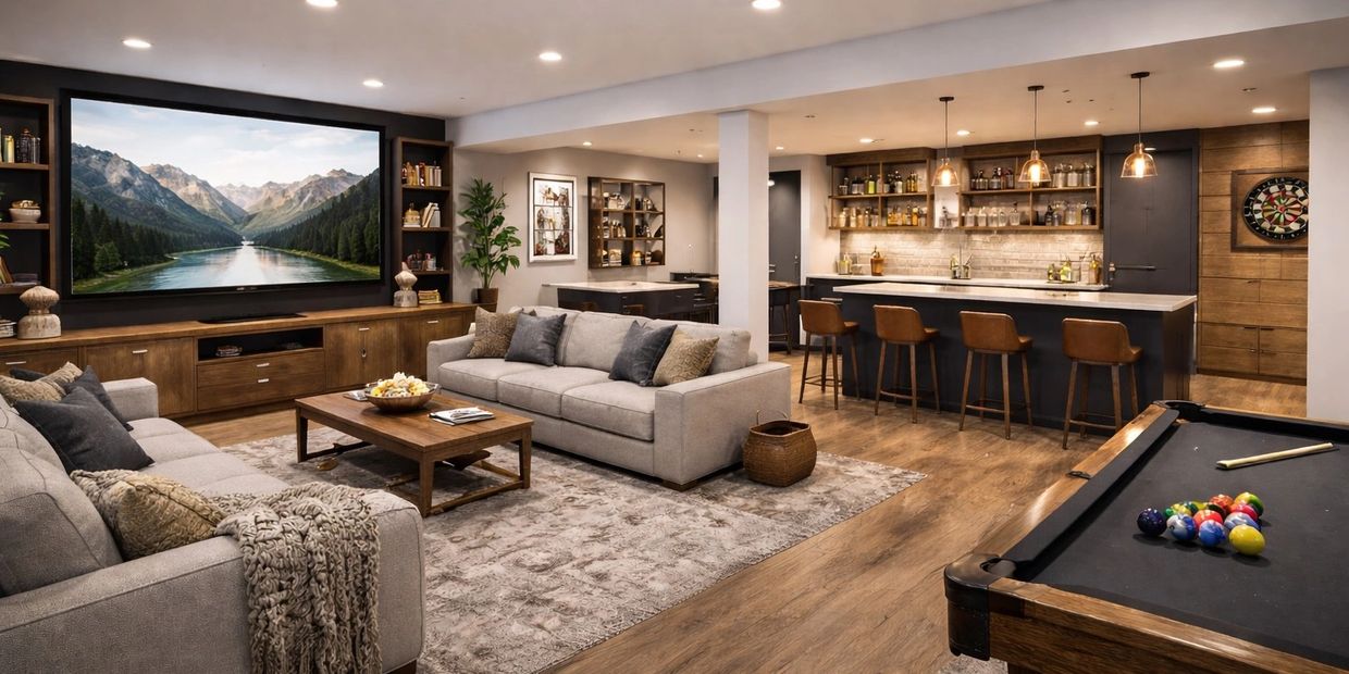 Transform your basement into a comfortable finished basement space for entertainment, relaxation, or family activities. Popular options include home theaters, game rooms, fitness spaces, or modern family lounges.